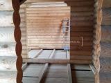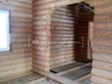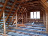 Установлена коробка под крышу из бруса-кругляка на ленточном фундаменте. Второй этаж мансардный.