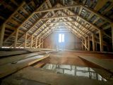 Первый этаж + мансарда, которую планировалось утеплить и использовать как жилой этаж. Панорамное окно в гостиной, с выходом на задний двор.