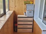 Лоджия застекленная, обшита вагонкой.