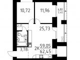 В продаже 2к квартира 62, 5м2 формата евро-3к в ЖК «Лучи».