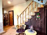 • Второй этаж: Деревянная резная лестница. Просторная гостиная с кухней в деревенском стиле и камином. Вторая комната (детская/спальня/вторая кухня с выводом воды). Большой санузел с ванной и местом для постирочной. Светлый холл с панорамными окнами – зона отдыха, зимний сад или кабинет.